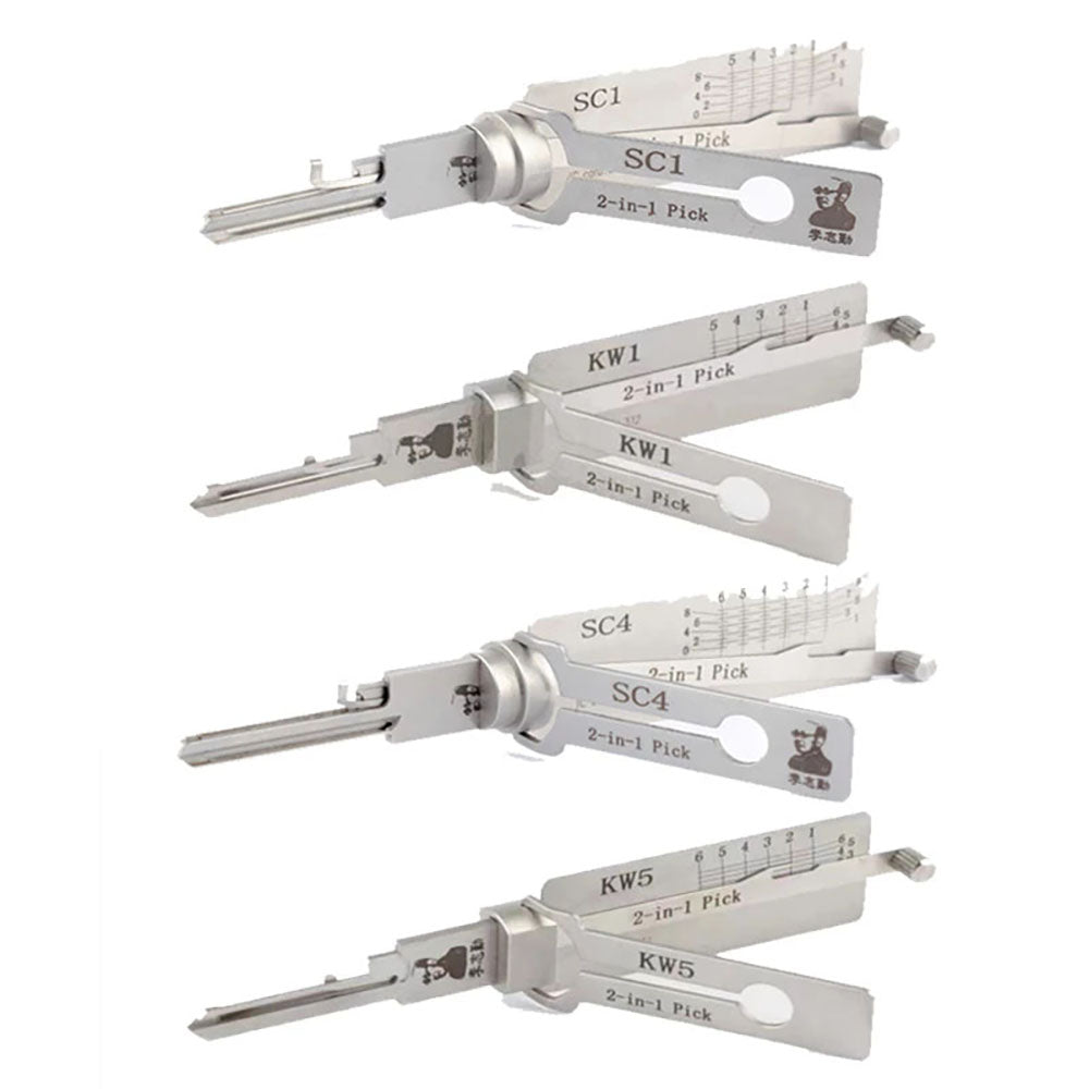 Lishi Residential Picks 4er-Bundle (SC1, SC4, KW1, KW5) und magnetische Tragetasche